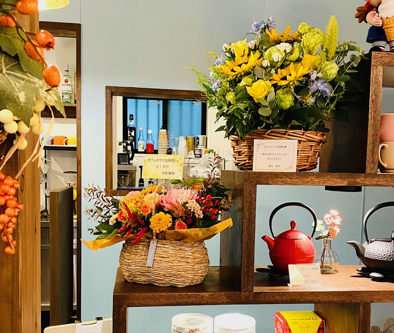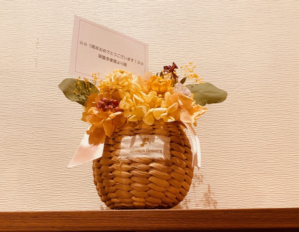 また、1周年を迎えるにあたりお花などの贈り物も頂きましたので、この場で改めて感謝の気持ちをお伝えしたいと思います。本当にありがとうございました!期間中お店が一気に華やかになりました☆彡