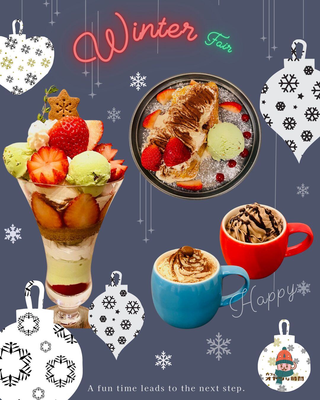 出始めた甘酸っぱい国産いちご、濃厚なティラミスやココアでほっこりしてください。