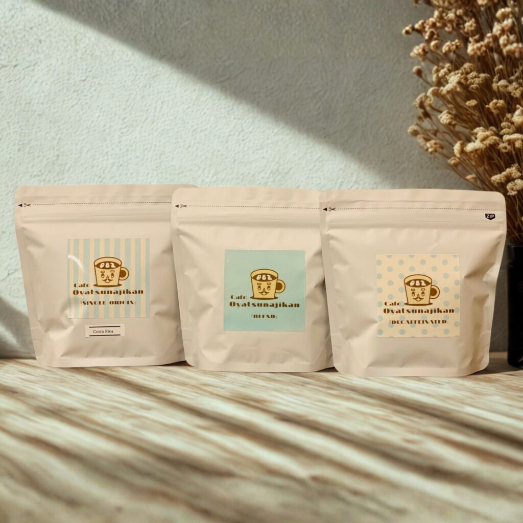 コーヒー豆は、仕入先から厳選した豆のみをお店で使っており、現在使用している3種を展開しています。